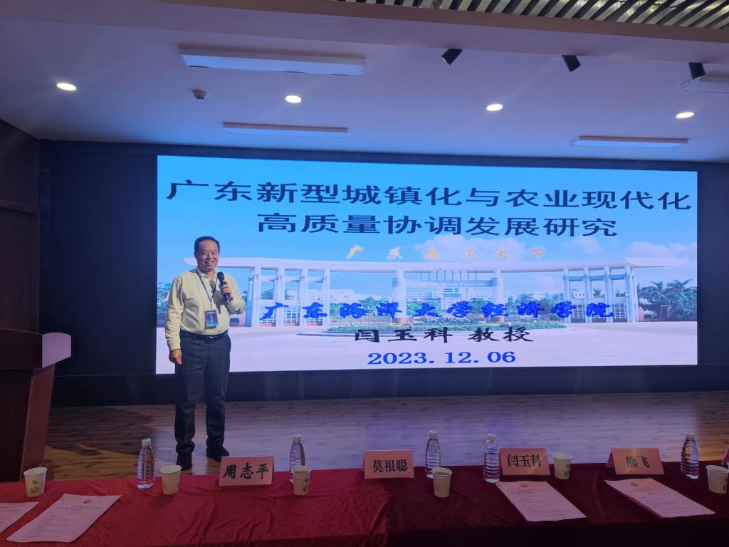 闫玉科教授以“广东新型城镇化与农业现代化高质量协调发展研究”为题做了专题报告。报告概述了新型城镇化发展现状、农业现代化发展现状、新型城镇化与农业现代化协调发展现状,系统分析了广东新型城镇化与农业现代化协调发展存在的区域人口城镇化发展严重失衡,人口城镇化滞后于土地城镇化,新型城镇化与农业现代化“争地”问题严重,城乡人才要素流动失衡,农业现代化发展融资难等问题,提出了建立和完善“两化”高质量协调发展体制机制,坚持新发展理念引领实施建设特色农业专业镇等工程,多措并举推动广东区域间城镇化协调发展等对策建议。报告受到了与会人员的高度评价,引发了热烈讨论。