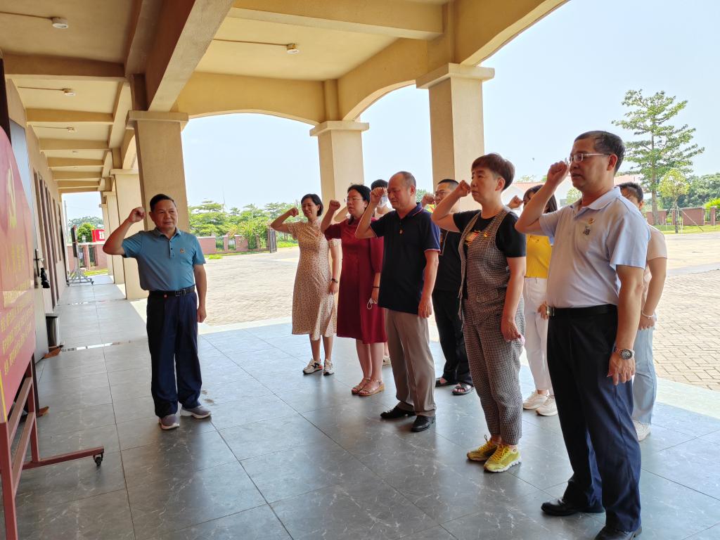 徐闻县墩尾村是革命老区村、原中共徐闻县县委旧址所在地,2018年被广东省确定为第二批党建示范工程“红色村”,是湛江市两个省定“红色村”之一。徐闻墩尾革命博物馆于2019年9月29日落成开馆,成为粤西地区展示红色革命精神和党员干部风采的新窗口,徐闻县“党性教育基地”和湛江市“党史教育基地”先后在此挂牌。基地管理员王朝满详细讲解了基地的旧县委办公场所、下洋人民抗战浮雕墙、徐闻墩尾革命纪念馆、党性教育报告厅的故事内容,为大家上了一堂特殊党课,特别是讲到抗日战争时期林飞雄烈士事迹时,他饱含热泪,深深感动了在场同志。随后,党员重温了入党誓词。