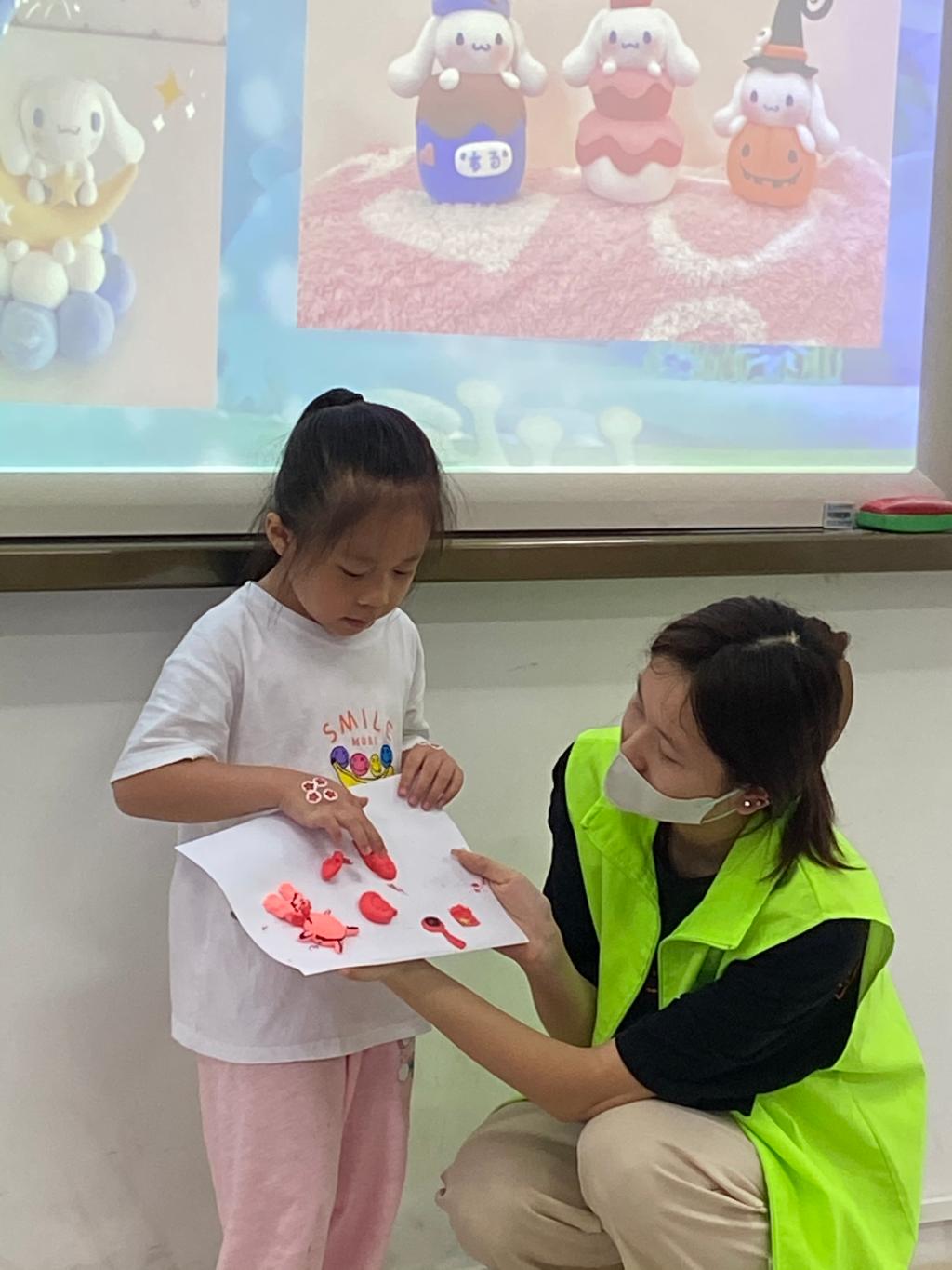 “益课堂”活动以老员工为后勤集团职工子女提供身心健康、运动锻炼、兴趣爱好等方面的素质拓展活动为主要内容,旨在培养孩子们文化艺术,帮助孩子们启发心智,增强孩子们的审美能力。此次活动,志愿者通过“学习新单词、绘画小游戏、捏泥人活动”三个活动环节,培养了后勤职工孩子们的艺术兴趣,陶冶了孩子们的艺术情操,提高孩子们的智力、自制力、意志力。