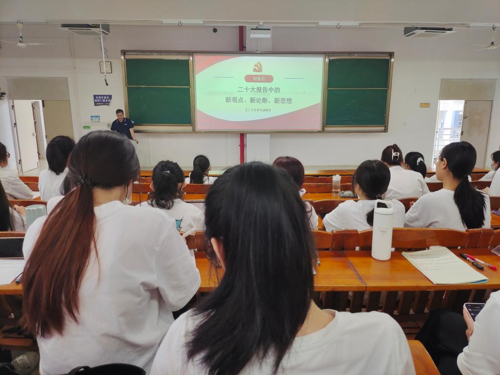 开班仪式结束后,温莉莉老师讲授了第一场党课—《中国共产党章程》总纲部分关于党的性质、宗旨和指导思想等内容;全文老师以党的二十大报告中的新观点、新论断、新思想为切入点,为同学们上了一场深入浅出的精彩党课。