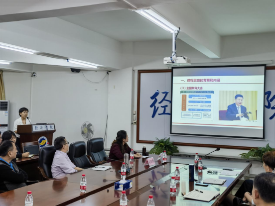 温明明副教授以《微观经济学》这门课为例,围绕着“教学问题痛点”、“课程思政融合理念”和“方法创新”等方面做了生动的报告。侯晓梅博士针对课程思政的“背景和内涵”、“要求”和“融入方法”展开了详细讲解。会后,学院老师纷纷表示,两位专家的报告有很强的针对性和指导性,对自己今后课程思政建设有很深的启发和帮助。