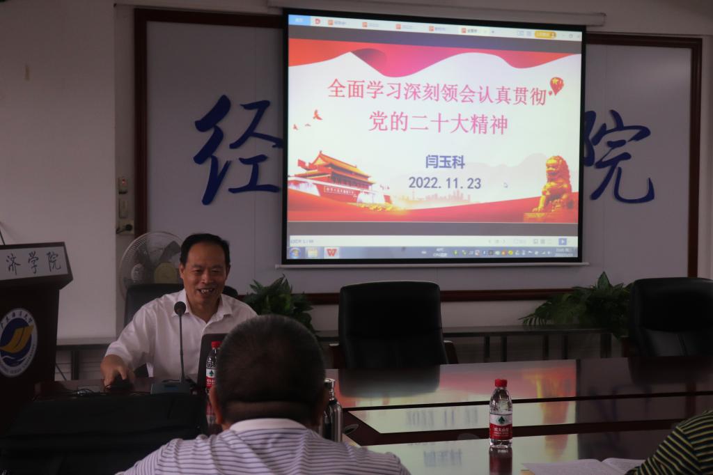 11月23日下午,威廉希尔中文官网在广学楼718召开党的二十大精神宣讲报告会,邀请到公司党委理论宣讲团成员闫玉科教授为大会做报告,威廉希尔中文官网全体教职工及部分员工党员共63人参加会议,会议由公司党委书记陈创主持。