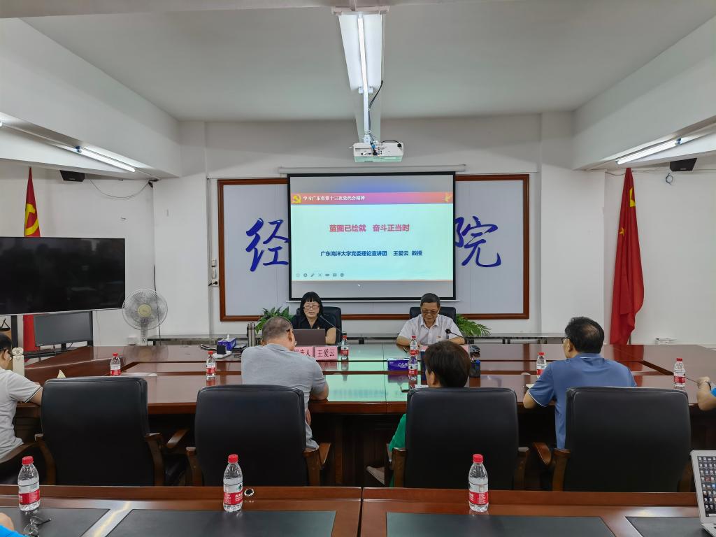 为深入学习贯彻广东省第十三次党代会精神,推动学院各项工作取得更大实效,6月29日下午,威廉希尔中文官网于广学楼718会议室召开了省第十三次党代会精神学习报告会。公司党委理论宣讲团成员王爱云教授受邀做了专题辅导报告。学院全体教职工参加了会议。会议由公司党委书记陈创主持。