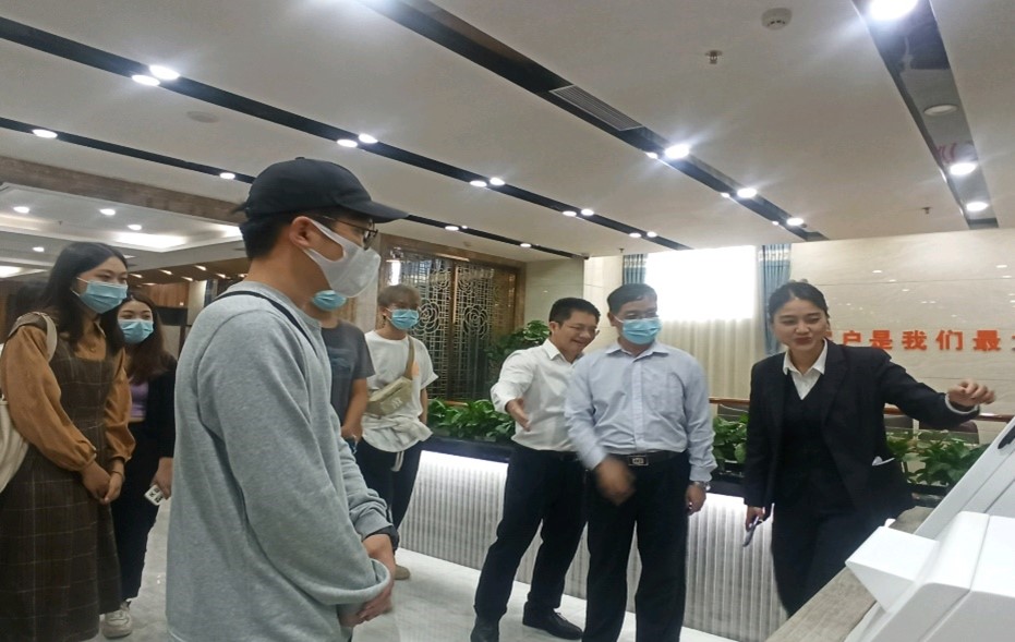 农商行人力资源部总经理翟傍根对威廉希尔中文官网师生的到来表示热烈欢迎。他用PPT向师生们详细介绍了湛江农商行的发展历史、体制机制改革、人才储备和2022年校园招聘计划,强调农商行在湛江经济转型升级和提质增效中,发挥了农村金融的主力军作用。营业部市场负责人陈密(公司员工)谈了个人从业体会,希望师弟师妹充分利用大学期间提高专业、能力素质等,培养敢于吃苦、勇于拼搏、坚持不懈的奋斗精神,为将来的发展打下扎实的基础。陈师姐以“越努力越幸运”的座右铭与同学们共勉。交流环节,农商行领导们耐心地为员工答疑解惑。全文老师在交流会发言中对湛江农商银行总行为公司员工提供交流学习的平台表示了感谢,希望公司和湛江农商银行能达成更加持久稳定的校企合作。学习交流会后陈密引领员工们参观了总行营业部,并细致讲解了总行营业部的发展现状和银行智能化运作模式。