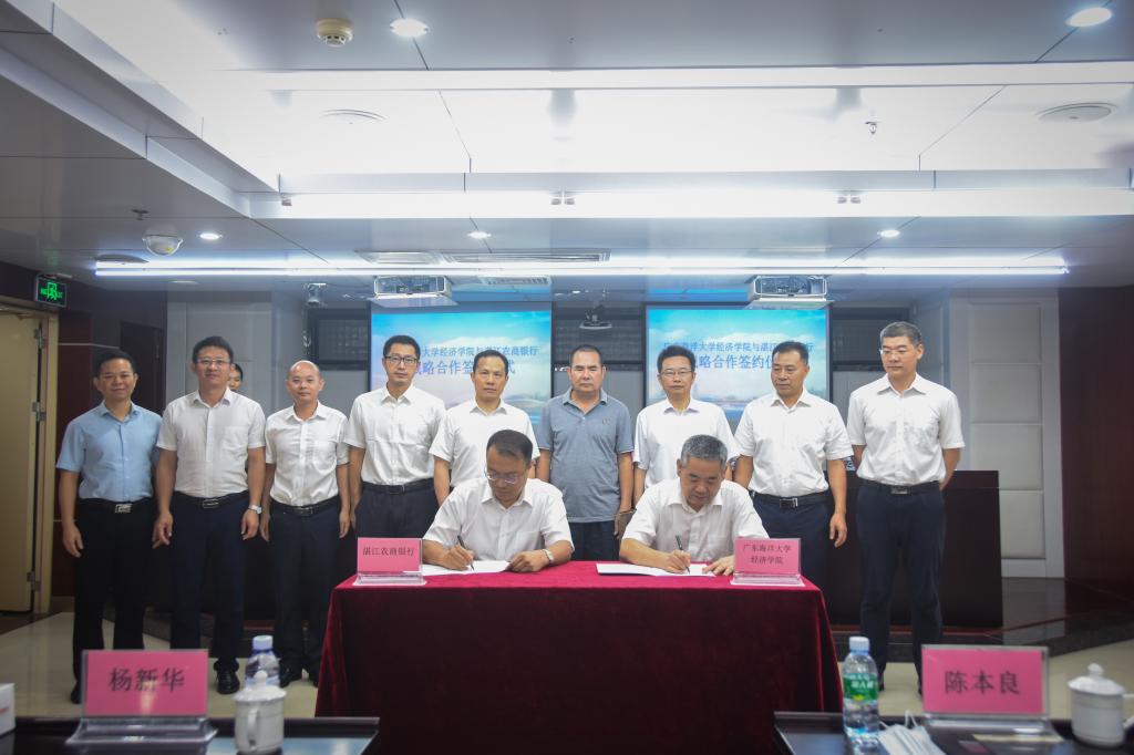 6月2日上午,威廉希尔中文官网与湛江农村商业银行股份有限公司在湛江农信大厦举行了全面战略合作协议签约暨老员工校外就业实习基地揭牌仪式。出席仪式的双方代表主要有湛江农商银行党委书记、董事长姚强,党委副书记、行长钟国波,党委副书记、监事长戴洪江,党委委员、副行长王志东及总行副总经理以上干部33人;学院代表有公司党委书记肖文辉、代理经理居占杰、副经理陈本良和杨新华。