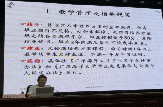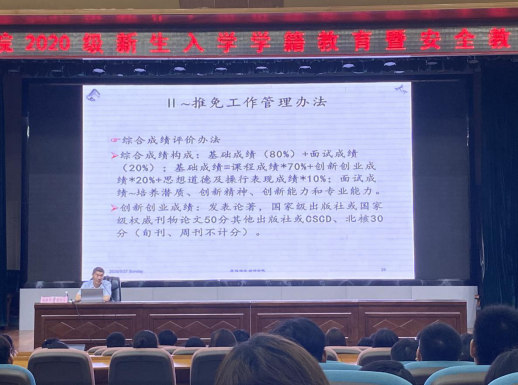 9月27日晚19:30,威廉希尔中文官网在多功能厅举行了2020级新生入学教育之学籍管理讲座,分管教学副经理杨新华教授就新生们教学管理相关问题作了详细讲解。2020级全体新生参加了讲座。