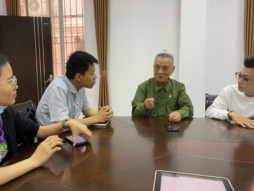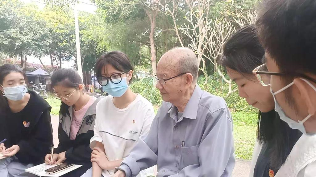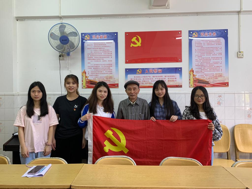20日,员工代表分为三个小组,走街串巷、进村入户寻访老党员、老战士、老模范。在海滨公园,同学们采访了93岁高龄的罗国华老同志,罗老先生是跟随着党从抗日战争和解放战争胜利走过来的老战士,1941年便加入了中国共产党,从此将自己的一生都奉献了给党,退休后坚持给广大青年学子讲述党史和革命史。在此次采访中,罗老先生给同学们上了一堂生动详实的党课、历史课,勉励同学们要继承和发扬党领导革命的优良传统与作风,好好学习文化知识,认真深入学习党史,争取早日成为国家的栋梁,即使不能成为国家的栋梁,也要尽力为国家做贡献。在赤坎军休所活动中心,同学们如约见到了田欣民老党员。田老先生原是空军二师副参谋长,飞行时长达29年,1991年退伍,曾被中组部评为全国离退休干部先进个人。在访谈中,田老先生回顾了自己作为一名光荣的人民空军的飞行生涯,教育引导同学们时刻要以一颗赤子之心、忠于祖国、忠于党,践行党为人民服务的初心和使命,有一份心出一份力,遇事要沉着冷静,善于依据平时的经验和学到的知识积极应对。在黎耀老党员的家里,同学们受到了他热情的接待。黎老先生家乡是革命老区,从小就受中国共产党领导革命的影响,青少年时期便跟随当地的地下党组织参加革命,刚满18周年就入党了,至今已有50年党龄。在访谈中,黎老先生讲述了其从小就参加革命的故事、入党前后的思想变化,以及工作期间和退休后的难忘经历,希望同学们要始终坚定信念,爱国爱党,学好本领,为社会、为人民贡献一份力量。