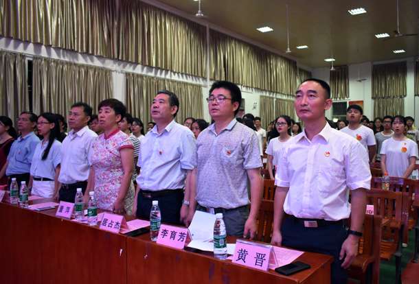活动在庄严的国歌声中拉开帷幕。李育芳作了主题讲话,他指出今年是五四运动100周年和新中国成立70周年,历史交汇形成新的起点,伟大事业呼唤再起征程。同学们生逢其时,要牢记习近平总书记对青年的寄语,一是要了解中华民族历史,秉承中华文化基因,发扬五四爱国精神,把自己的理想同祖国的前途、把自己的人生同民族的命运紧密联系在一起,以史明志,忠于祖国。二是要听党话、跟党走,立鸿鹄志、做奋斗者,坚定“四个自信”,培养奋斗精神,坚定理想信念,勇于担当、求真学问、练真本领,为国争光、为民造福。三是要知行合一、扎根中国,严谨务实、深入实践、苦干实干,担当起德智体美劳全面发展的社会主义建设者和接班人的光荣历史使命,为实现中华民族伟大复兴的中国梦而不懈奋斗。