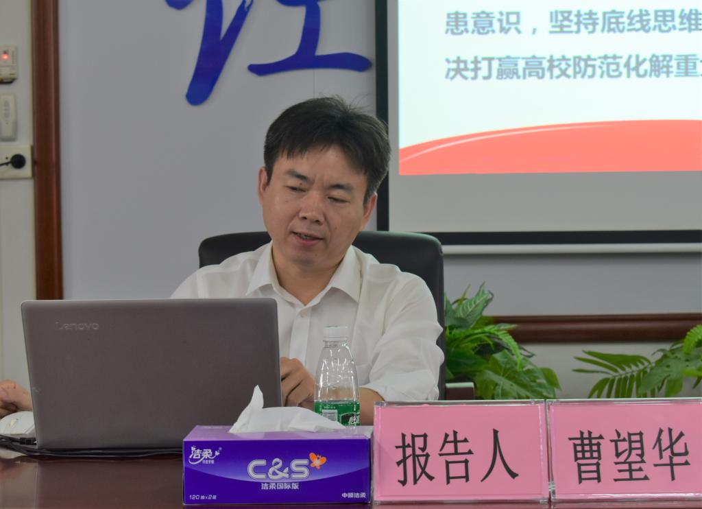 在报告会中,曹望华以“深入学习《习近平谈治国理政》第三卷——一以贯之增强忧患意识,防范风险挑战”为题,为我们系统介绍了《习近平谈治国理政》第三卷的重大意义及内容体系,专题解读了第三卷中的第八专题集中收入了习近平总书记关于“增强忧患意识,防范化解风险挑战”的重要论述。结合高校办学实际,曹望华指出高校要重点加强科学研判,持续精准发力,着力防范化解五大风险;要强化党的领导,履行政治责任,办好人民满意的大学。宣讲报告政治站位高,内涵丰富,翔实生动,对于如何学好用好《习近平谈治国理政》第三卷具有很强的指导意义。