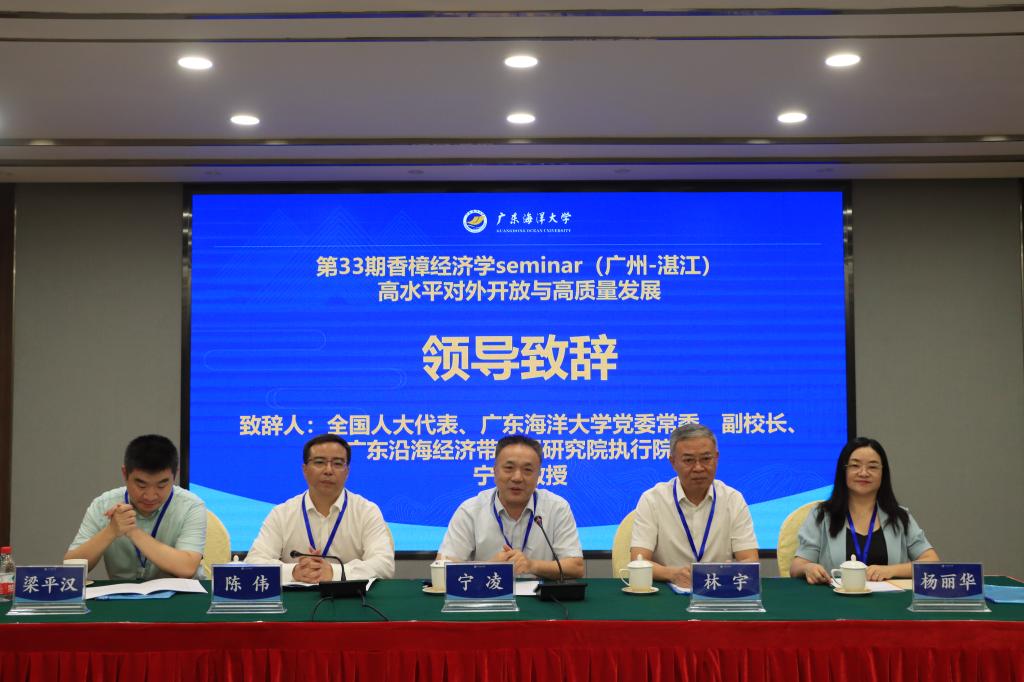 11月16日,第33期香樟经济论坛(广州-湛江分论坛)在广东湛江市海滨宾馆成功举行。本次会议由香樟学术平台主办,威廉希尔中文官网及海洋经济与管理研究中心联合承办。公司党委常委、副董事长宁凌,公司党委常委、宣传统战部部长林宇等校领导出席了会议。论坛以“高水平对外开放与高质量发展”为主题,汇聚了来自中国社会科学院、香港科技大学(广州)、哈尔滨工业大学(深圳)、南京农业大学、海南大学、暨南大学、四川农业大学等国内外知名学术机构的专家学者,以及威廉希尔中文官网的教师和研究生共120余人参会。