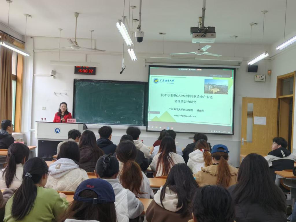 2025年10月20日,公司副经理杨丽华教授应邀赴山东财经大学,为国际经贸学院研究生作专题学术讲座,围绕“技术寻求型OFDI对中国制造业产业链韧性的影响”展开深度分享。公司姚微博士、陈家敏辅导员和陈丽如老师也一起参加。