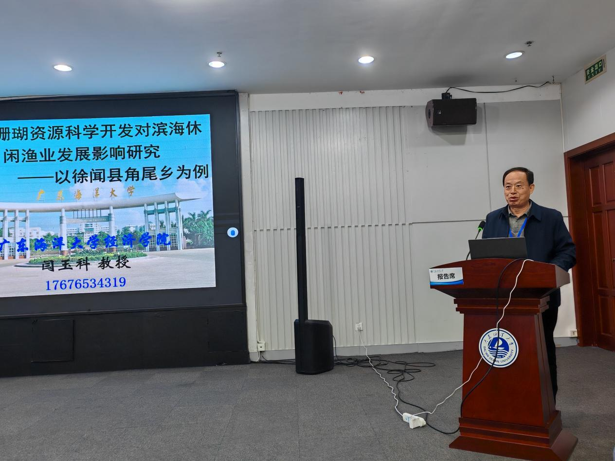陈伟经理主持了中国林牧渔业经济学会渔业经济专业委员会和中国水产学会渔业经济与政策专业委员会专家论坛;闫玉科教授以“南海珊瑚资源科学开发对滨海休闲渔业发展影响研究——以徐闻县角尾乡为例”为题做了专题报告。报告概述了南海珊瑚资源科学开发的现状、南海滨海休闲渔业发展的现状和南海珊瑚资源科学开发对滨海休闲渔业发展影响的现状,系统分析了徐闻县角尾乡珊瑚资源科学开发与有效利用产品开发初级化,有效治理体系待完善,共赢机制未建立等问题,并提出了坚持新发展理念科学开发珊瑚资源,深度开发珊瑚文化和渔家文化,科学构建有效珊瑚保护与开发治理体系,建设“专业管护+创新研发+志愿服务”人才队伍等科学开发利用南海珊瑚资源促使滨海休闲渔业高质量发展的系列对策建议。报告内容受到了与会领导、专家的高度评价,引发了热烈讨论,为我国滨海休闲渔业特色化高质量发展指明了方向。