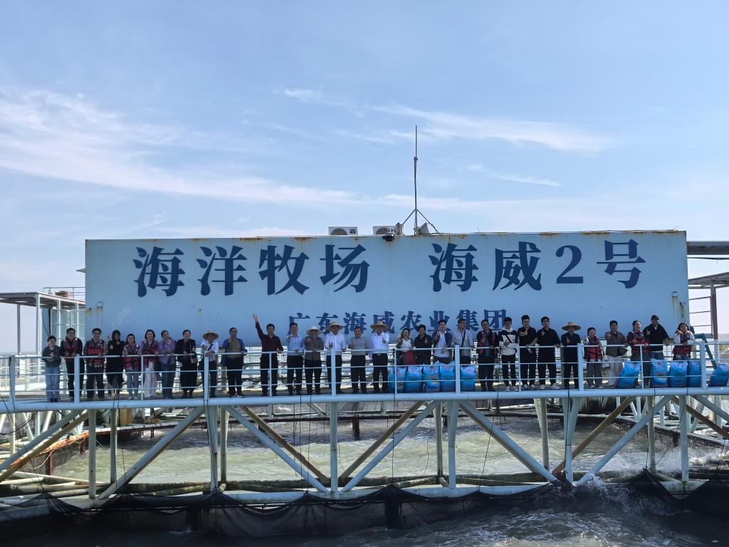 团队从流沙港码头乘船登“海威2号”深远海养殖平台。在海威集团技术人员的引导下,团队详细了解平台搭载的水质监测、智能投喂、远程控制等系统运行原理,实地考察军曹鱼、石斑鱼等优质品种的养殖情况,对企业以党建引领技术创新、带动群众增收的做法高度认可。