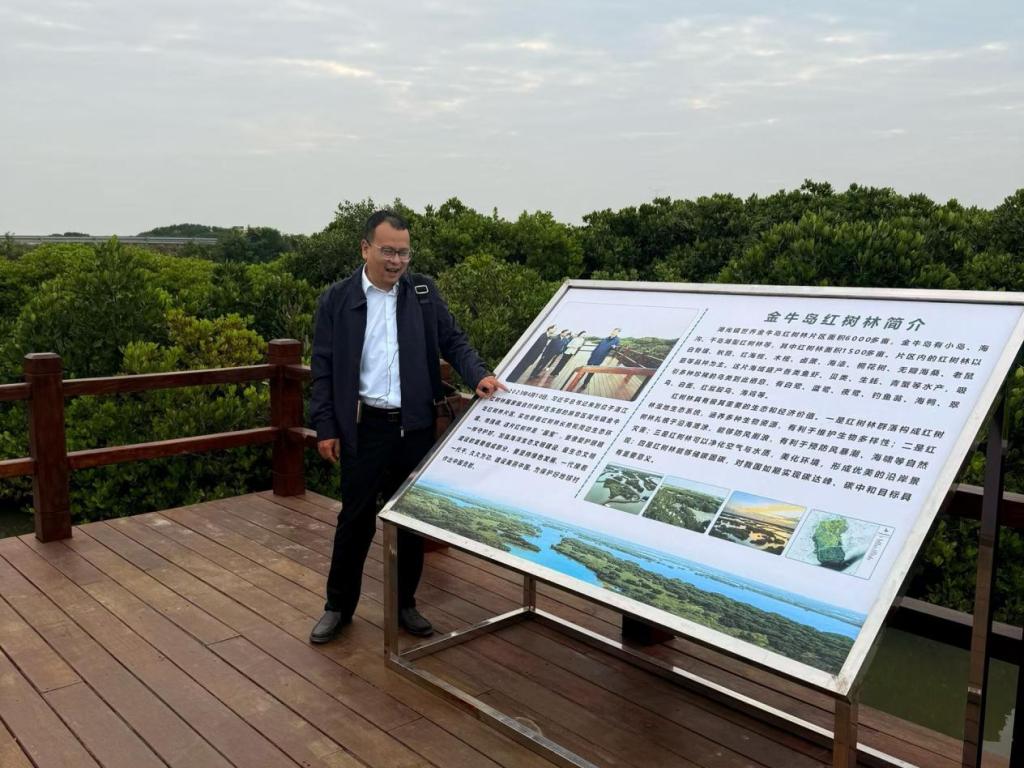 习近平总书记曾在2023年考察湛江金牛岛红树林片区时,将其誉为国宝并叮嘱要像爱护眼睛一样守护好的生态胜地,同学们沿着习近平总书记当年的考察路线进行实地考察,近距离观察秋茄、红海榄等原生红树树种,充分了解红树林胎生特性及防风消浪、净化海水、储碳固碳的核心生态功能,同时真切体会到生态保护与经济效益双赢的绿水青山就是金山银山发展理念。