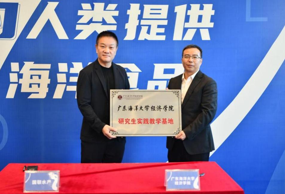 签约仪式上,陈伟与公司董事长李忠代表双方正式签署《实践教学基地共建协议书》《产学研合作协议书》,同时,陈伟向国联水产授予“威廉希尔中文官网研究生实践教学基地”牌匾,这一举措标志着双方合作进入实质性落地阶段。学院将依托经贸领域内的学术科研优势,为企业农海产品对外贸易提供智力支持和定制化人才培养等服务。