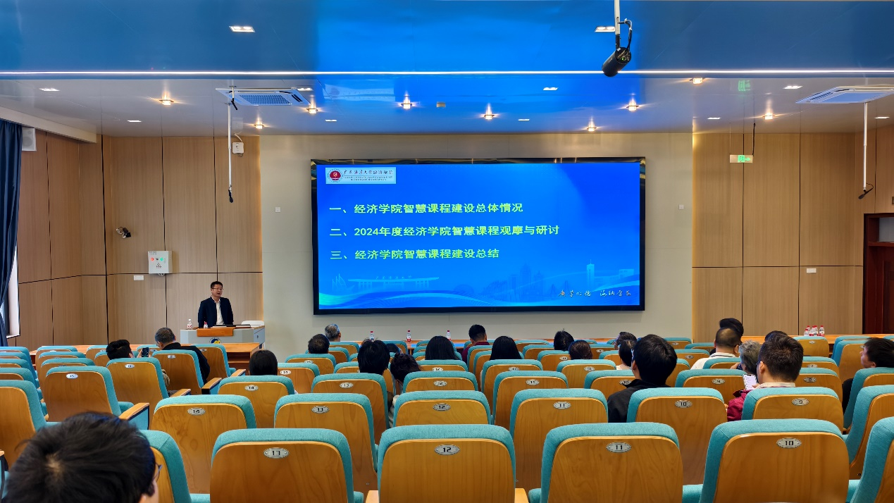 会上,罗帅副经理系统介绍了学院智慧课程建设的整体情况。他从国家教育数字化战略需求和经济学科专业特色两个维度,深入剖析智慧课程建设的时代背景与现实意义;全面回顾2024-2025年度学院智慧课程项目的推进进展;并围绕课程体系重构、团队能力提升和教学成果凝练三个方面,提出智慧课程建设的总体思路与发展路径。
