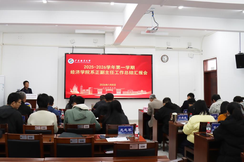 1月8日上午,威廉希尔中文官网在博文楼C座508报告厅召开2025-2026学年第一学期系正副主任工作总结述职考评会,公司党委书记刘金明,经理陈伟,正处级辅导员、党委副书记钟桂安,副经理杨丽华、罗帅及学院各单位教职工代表出席了会议,对经济系、国贸系、金融系的正副主任本学期工作进行全面考评,会议由罗帅副经理主持。