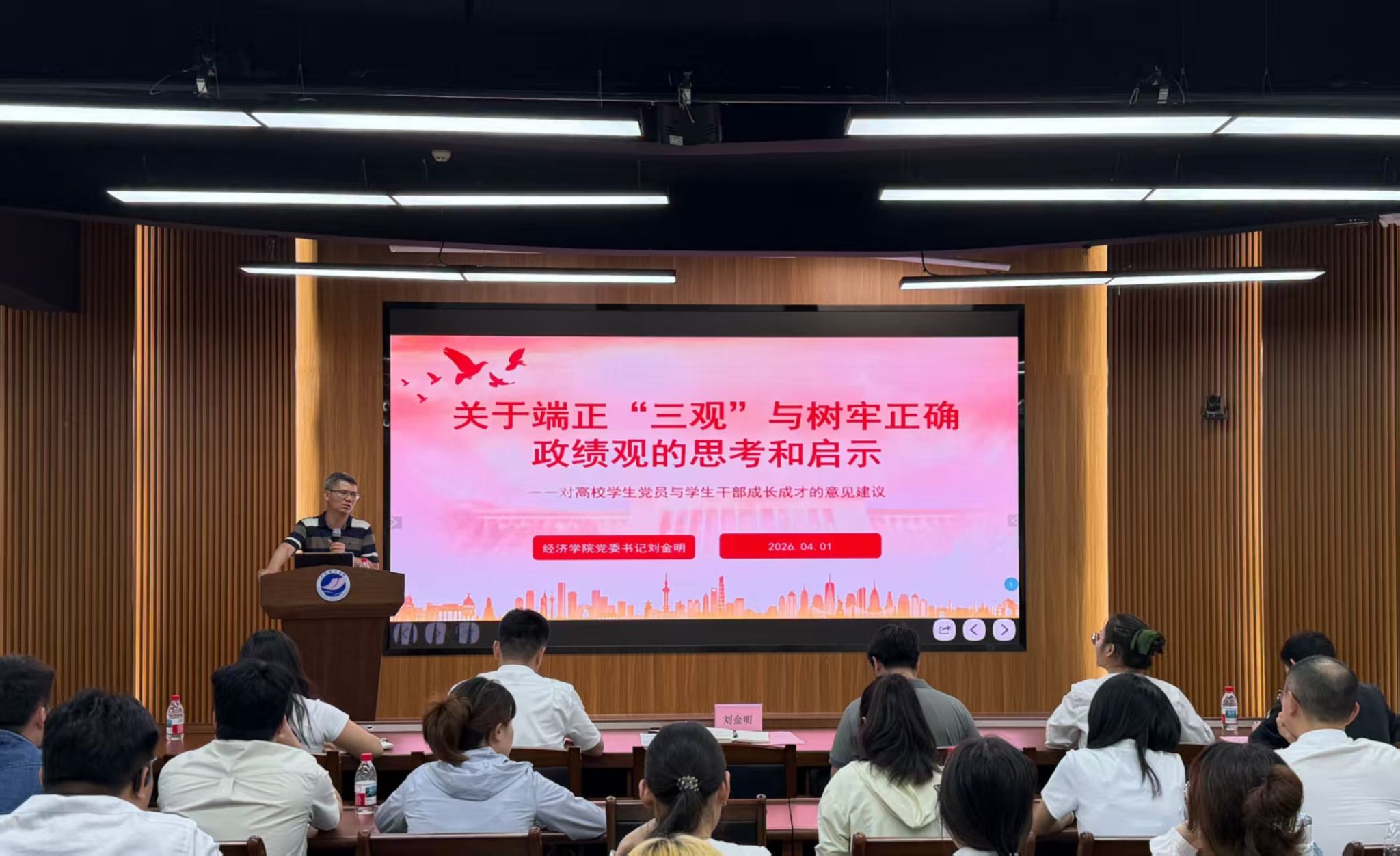 为加强青年员工思想政治引领,4月1日下午,公司党委书记刘金明以《关于端正“三观”与树牢正确政绩观的思考和启示——对高校员工党员与员工干部成长成才的意见建议》为主题,在海创楼303报告厅为学院员工党员和员工干部代表、青马班学员讲授“思政第一课”。