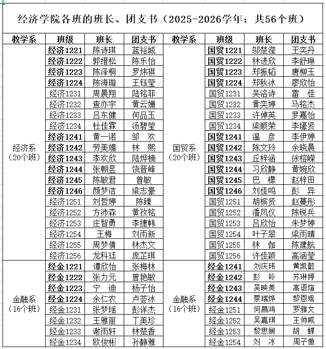 分管24级经济系、国贸系本科生。负责员工会,员工,助贷,工会委员;分管领导安排的其他工作。