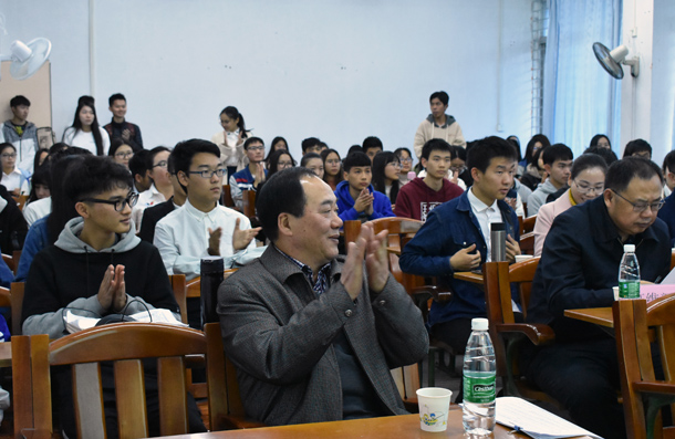 12月21日下午,学院在海滨校区实验楼305举行首届大一“七星”评选活动复赛。公司党总支阮彭林,系主任陈本良、尹年长、周明华、尹萌,教师代表李飞星、高维新、余源、徐玉威,辅导员李文河、祝敏丹出席并担任评委,经院2017级100多名员工参加活动,海滨校区学工办常务副主任杨震应邀出席。本次活动由经济1172班承办。