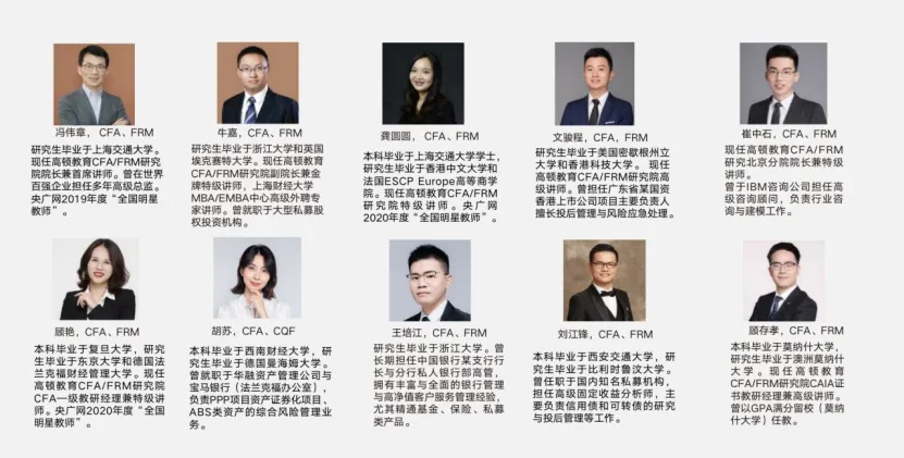 CFA菁英班团队团队全部由行业顶尖人才和中外名校毕业生组成,从事CFA教学研工作长达多年,对于教学工作具有丰厚经验。CFA菁英班全体团队均合作知名企业高顿教育集团,其为公司开展培优计划CFA菁英班的唯一合作伙伴。