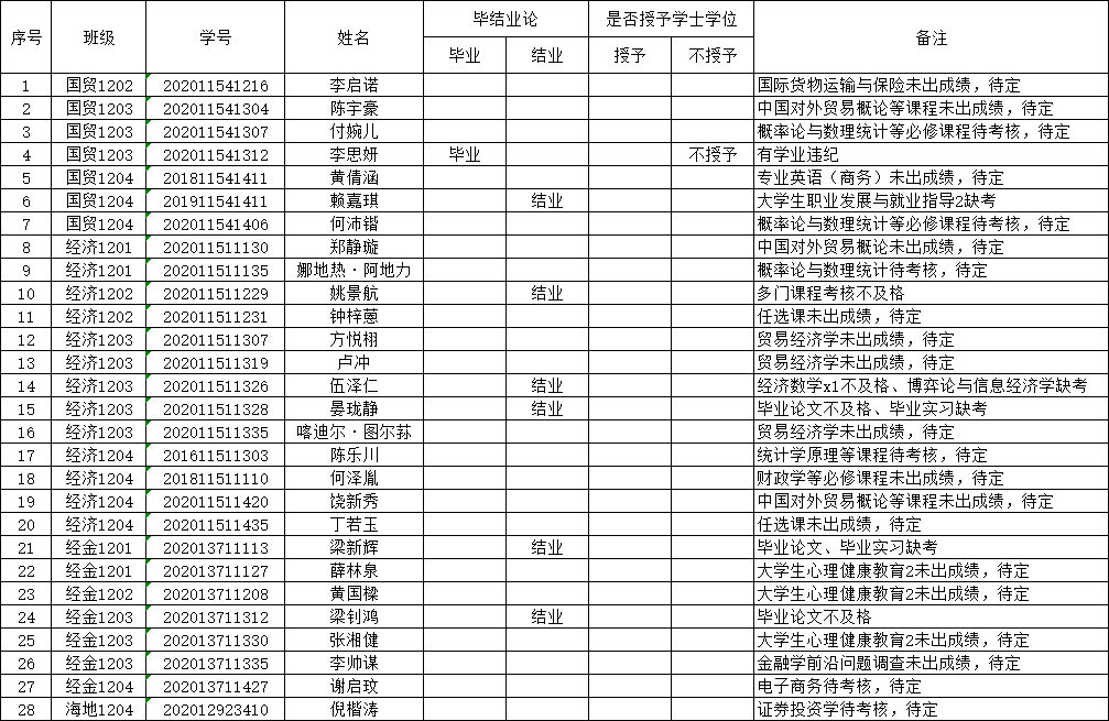根据教务部要求现将毕业不授予学位、结业、待定的员工名单在全院范围内进行公示。