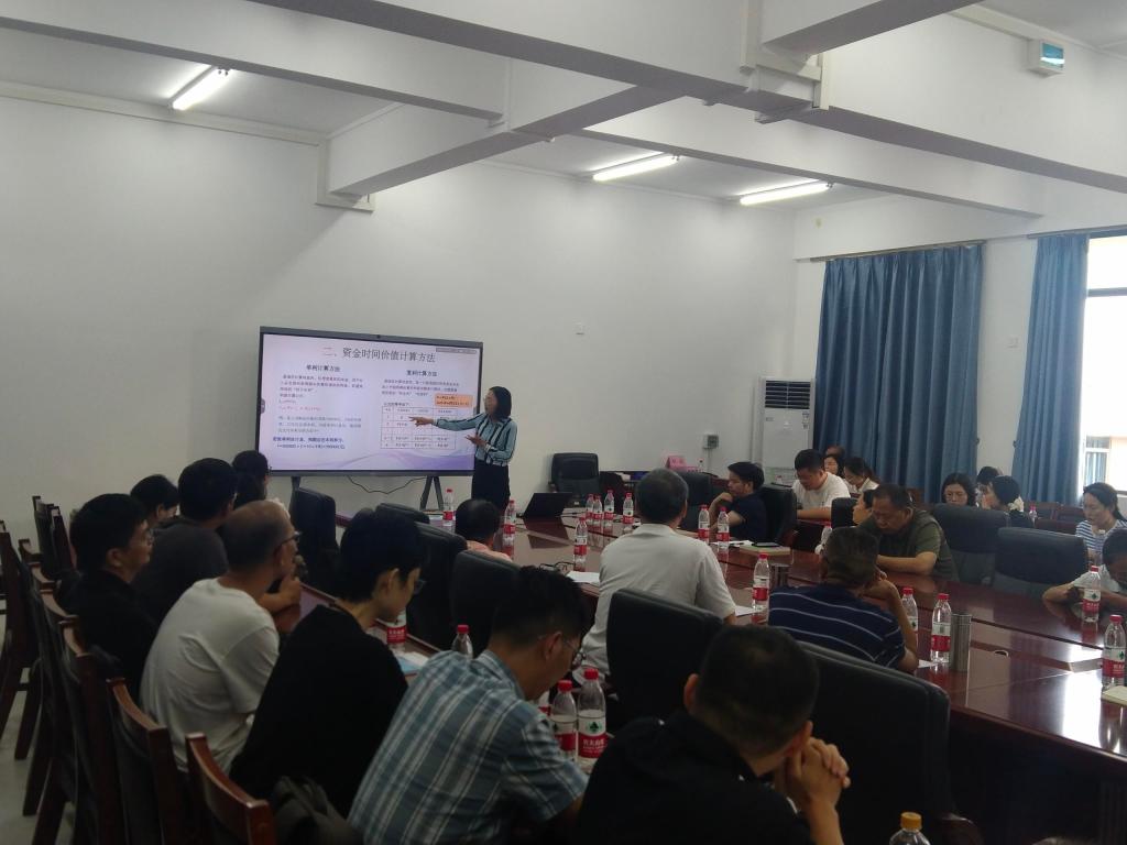 参赛教师徐玉威以主讲课程《固定收益证券》-“资金的时间价值”为内容展示了说课、课堂教学等环节。学校本科教学督导杨丽华副经理进行了点评,对参赛教师的课程教学设计、案例导入、课程思政、课堂互动等给予充分的肯定,也对课件设计、多元化案例呈现等提出提升的建议。