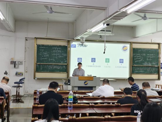随后老师们针对同学们的问题提出解答和相关建议。系主任刘宏楠针对员工们提出的问题给出了详细的建议和指导。他提出国贸系老师负责的课程数量应该得到合理控制,以避免因负担过重而影响教学质量。针对数学等难度较大的课程,他鼓励员工积极利用网络资源,比如网课,来进行额外的学习和巩固。对于英语四六级考试、各类比赛、留学机会、交流项目以及考研等重要事项,由于员工们普遍缺乏深入了解,刘宏楠老师建议低年级员工主动寻求高年级员工的帮助和经验分享,同时系里也会向学院反映情况,组织专门的宣传会,以便员工们能够更全面地了解这些重要的未来规划选项。此外,他还强调,老师在布置课程论文时,应该明确论文的字数要求、格式模板等,确保员工能够清楚地理解并按时完成。在员工有疑问时,老师应及时提供解答和指导,以避免误解和不必要的麻烦。对于员工反映的生活安全问题,如电动车数量不足、外卖安全问题、课桌椅老旧以及自来水水质差等,刘宏楠老师也建议员工及时向学校有关部门反映情况,以便后勤部门能够及时跟进并解决这些问题。