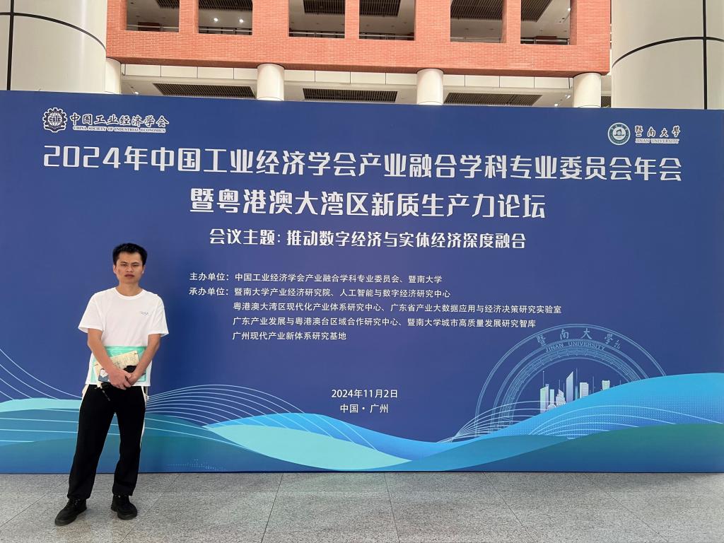 2024年11月2日,中国工业经济学会产业融合学科专业委员会年会暨粤港澳大湾区新质生产力论坛在暨南大学成功举办。此次论坛聚集了全国各地高校以及多个科研院校的优秀专家学者,围绕产业融合、数实融合、粤港澳大湾区新质生产力发展等重大理论和实践问题分享自己的观点并进行了深入的讨论。公司吕晶晶老师团队的论文“人工智能对供应链韧性的影响机制研究——基于上市公司内部和外部共同治理视角”在大会“数实结合与现代化产业”分论坛上作了交流汇报。