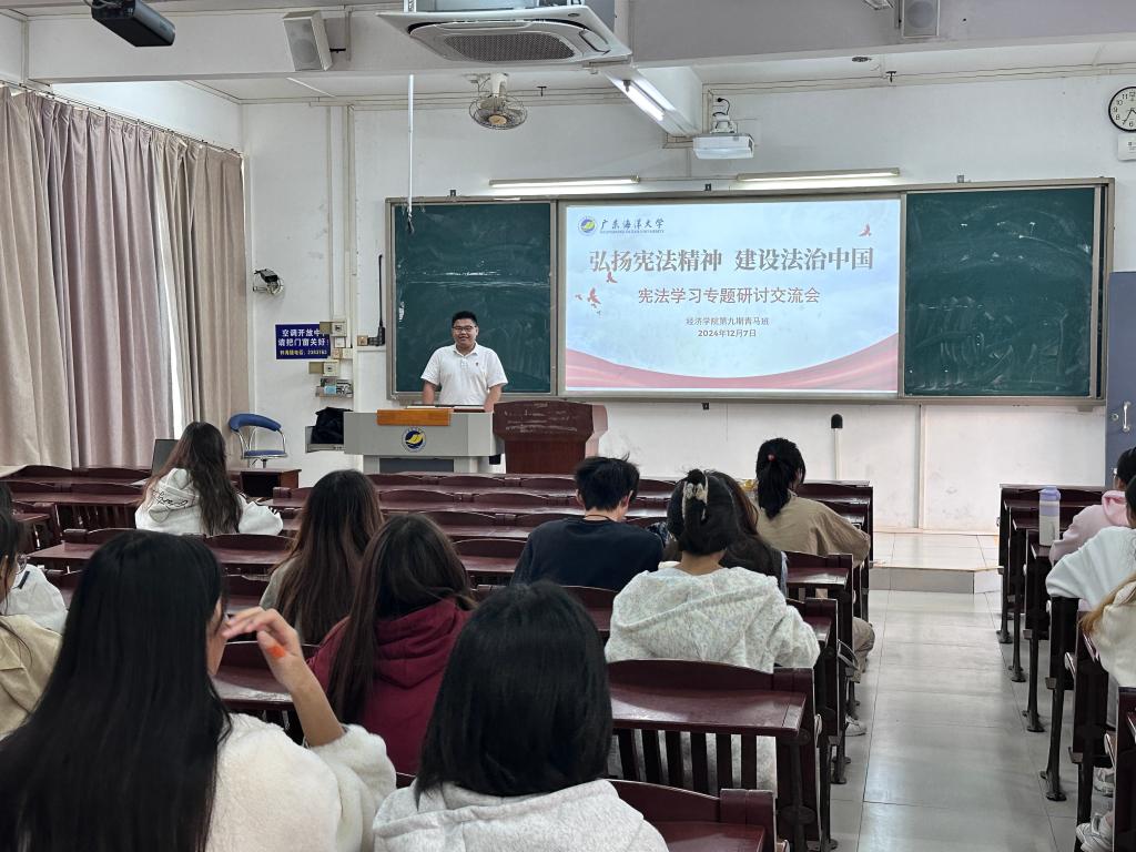 12月7日,班长梁顺荣同学主持召开了“弘扬宪法精神,建设法治中国”宪法专题交流会。同学们共同学习研讨了宪法中公民基本权利保障以及国家机构组织运行原则等内容,深刻领悟到宪法作为国家根本大法的关键地位,还积极分享自身对宪法的理解。