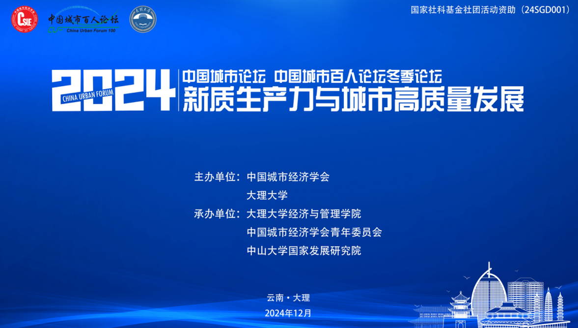 2024年12月28-29日,中国城市论坛、中国城市百人论坛冬季论坛在云南大理成功举办,本次论坛由中国城市经济学会、大理大学主办,大理大学经济与管理学院、中国城市经济学会青年委员会、中山大学国家发展研究院承办。