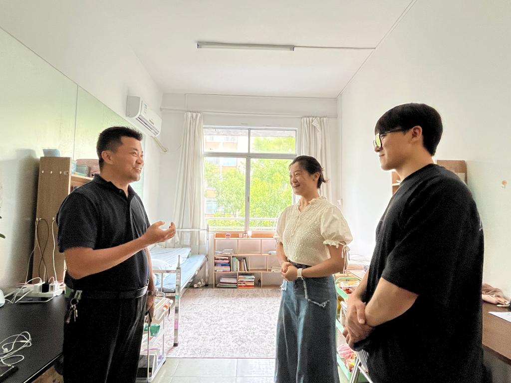 走访过程中,钟桂安逐一查看宿舍受损情况,详细询问同学们科研进度、生活状况及家庭受灾情况,勉励大家坚定信心、共克时艰。他强调,学院始终把员工生命安全和身心健康放在首位,将全力保障受灾同学的学习生活需求,确保大家度过一个平安、温暖的中秋佳节。同时,他还鼓励员工以乐观积极的心态面对困难,积极参与到校园的修复工作中来,共同维护温馨的校园环境。