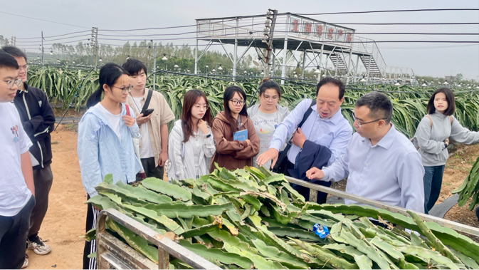 座谈会后,沈总带领师生参观了国家储备糖库、火龙果种植基地、百香果种植基地以及农旅产业园,品尝了公司自主研发的红糖咖啡与柠檬茶等特色产品。沈总欢迎海大研究生多到公司研学或就业,引起同学们的广泛兴趣与热烈回应。