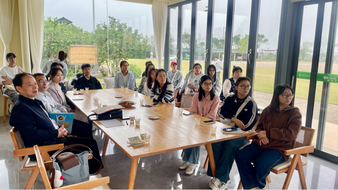 公司副总经理沈梅金在广东北部湾农文旅产业园会议室向威廉希尔中文官网师生详细介绍了广东金岭糖业集团的发展历程、主要业务板块和农文旅产业园建设情况,重点讲解了北部湾农文旅产业园在推动现代农业创新与实施乡村振兴方面取得的成效与实践经验。
