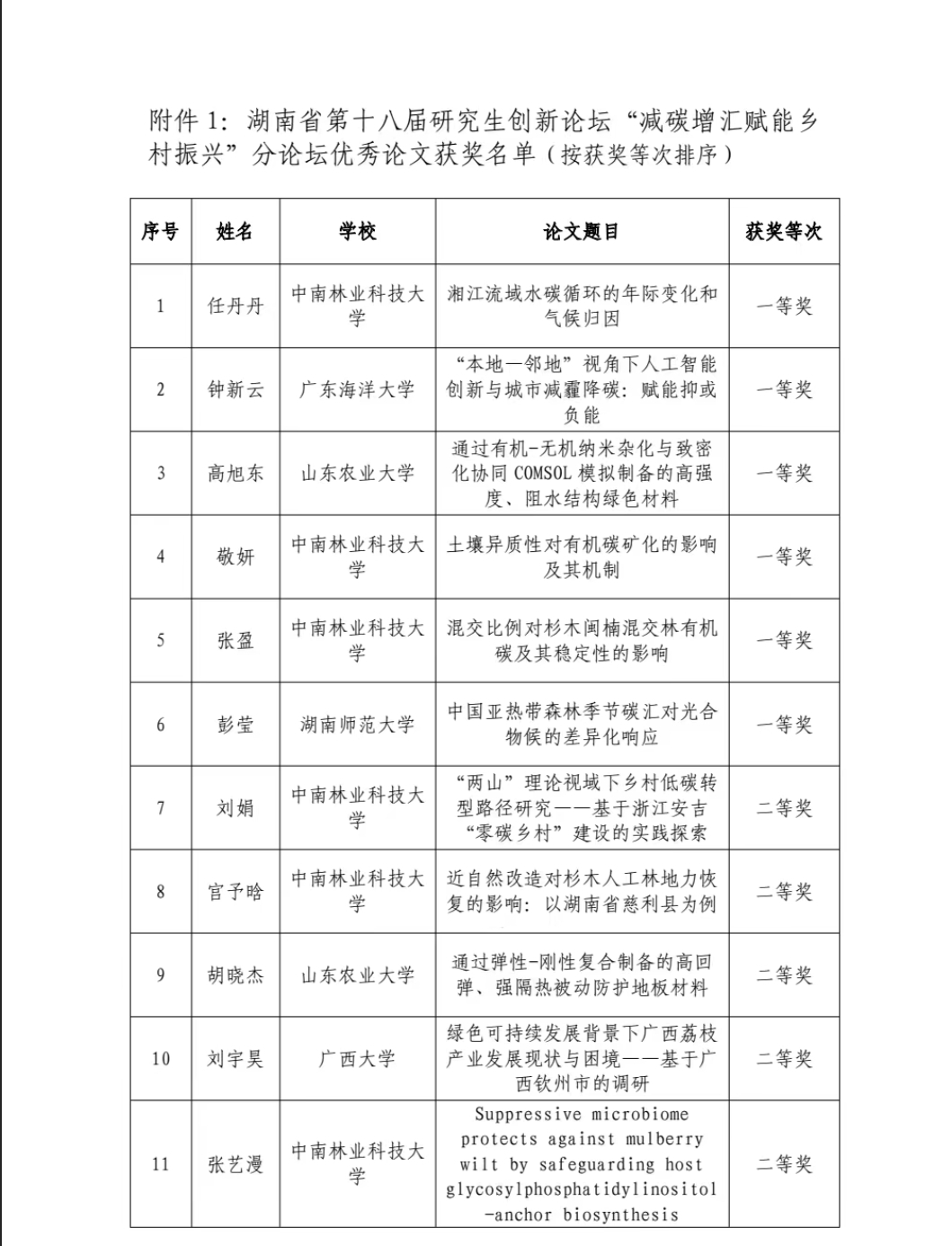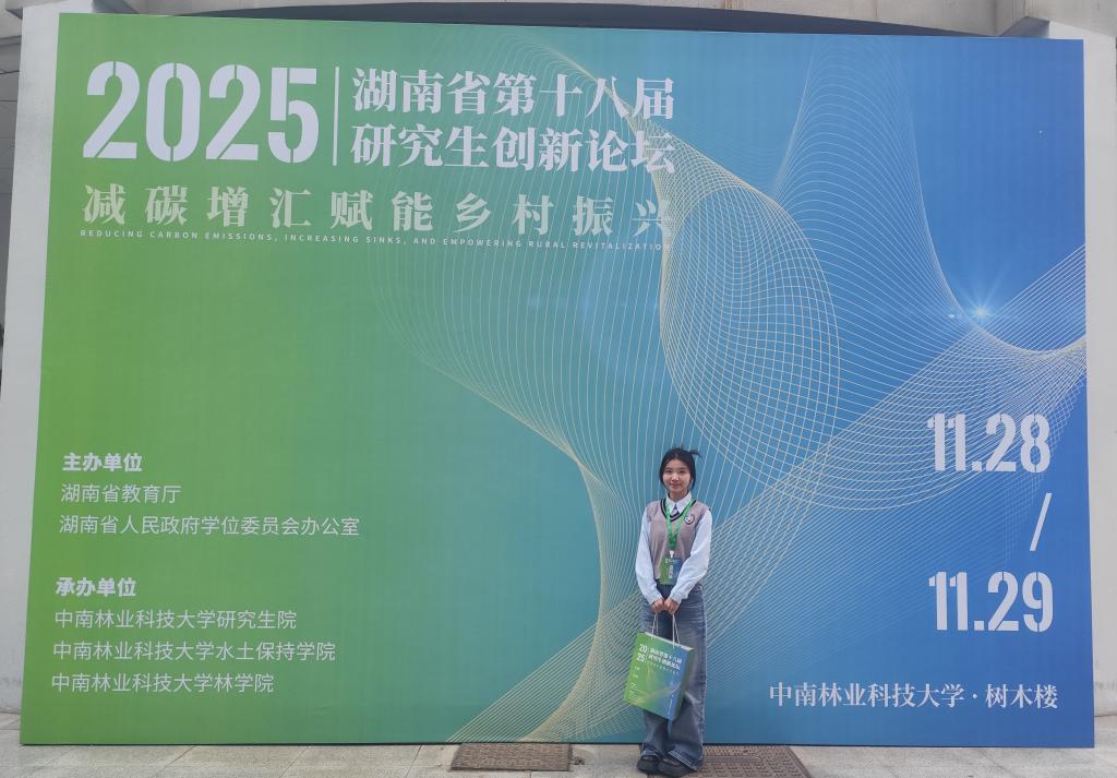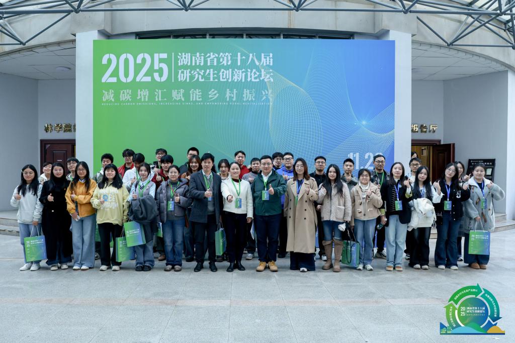 2025年11月28日至29日,由湖南省教育厅、湖南省人民政府学位委员会办公室主办,中南林业科技大学研究生院等单位承办的“2025年湖南省第十八届研究生创新论坛”在长沙顺利召开。论坛以“减碳增汇赋能乡村振兴”为主题,吸引了来自全国高校及科研机构的专家学者与师生代表。与会人员围绕低碳治理与乡村振兴的融合发展路径展开深度研讨,为双碳目标下的乡村绿色发展提供智力支撑。