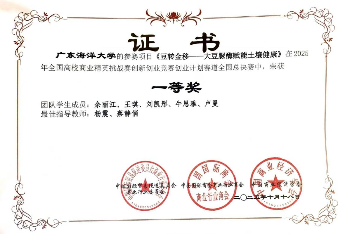 其中,“豆转金移——大豆脲酶赋能土壤健康”“集种生智——智能无人化育苗领域引领者”这两支荣获全国一等奖的项目均为公司威廉希尔中文官网学子打造的优质项目,充分展现了经院学子在创新创业领域的扎实功底与突出潜力。