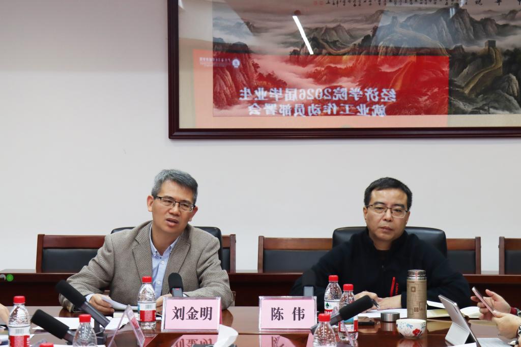 刘金明传达了学校2026届毕业生就业创业工作会议精神并作动员讲话,对做好学院2026年毕业生就业工作提出五点意见:一是要提高政治站位,自觉强化责任担当;二是要深化产教融合,切实优化人才培养;三是要精准摸排需求,准确提供分类指导;四是要拓宽就业渠道,深入挖掘岗位资源;五是要加强就业教育,积极引导正确观念。他号召学院全体统一思想、深化认识,团结奋斗、多措并举、守正创新,想方设法做好2026届毕业生就业创业工作。