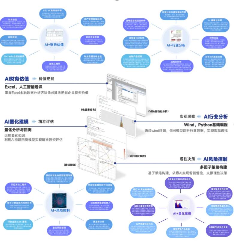 基于Excel、Python等传统金融工具,深度融合人工智能技术与金融业务场景,从AI金融数据处理切入,运用AI工具高效清洗、整合金融财报、市场交易等数据,贴合CFA对数据精准分析的要求,同时聚焦估值建模等核心领域,培养学员从数据挖掘、分析洞察到实现决策优化的全链路能力。通过真实金融案例,如智能投研、风险预警,打通AI技术与金融应用链路,助力学员用AI赋能金融专业学习,提升CFA备考竞争力,适配金融数字化职场需求 ,打造金融专业素养与科技应用能力兼备的复合型人才。