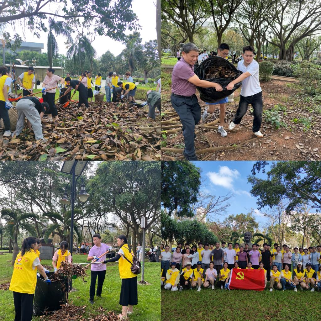 为积极响应学校关于开展校园环境清洁与爱国卫生运动的号召,营造整洁优美、健康和谐的校园环境,10月16日上午,公司领导陈创、钟桂安组织了100余名师生志愿者全身心投入到图书馆前花坛区域清理积水、清除垃圾等工作中,共清理走了16车垃圾。