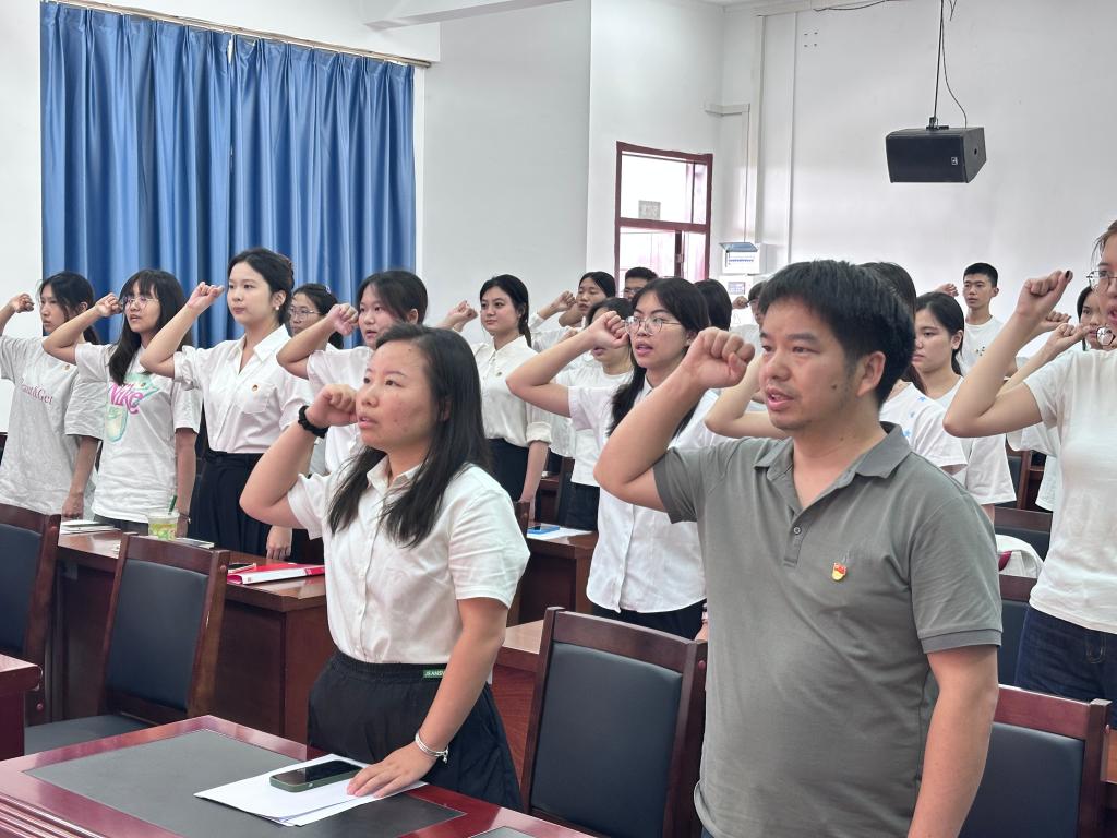 活动以“廉”为核心,分为五大环节开展。一是“经典咏‘廉’”故事会。三名党员代表深情讲述焦裕禄、张富清、黄文秀严守党纪的感人事迹,展现了时代楷模坚守八项规定的公仆形象。二是“规‘声’入心”话清廉部分。十三名发展对象将八项规定要求融入《石灰吟》等颂廉诗篇,以古筝钢琴伴奏的情景朗诵,让纪律在诗意中浸润人心。三是“不忘初心”歌唱表演。四十五名积极分子演唱《不忘初心》,用嘹亮歌声传递信仰坚守与时代担当。四是“清风同行”大合唱。全体人员齐唱《三大纪律八项注意》,在经典旋律中让纪律要求内化为行动自觉。最后,全体毕业生党员庄严宣誓,承诺恪守党纪、永葆清廉,扣好廉洁从业“第一粒扣子”,以清白之姿开启新征程。