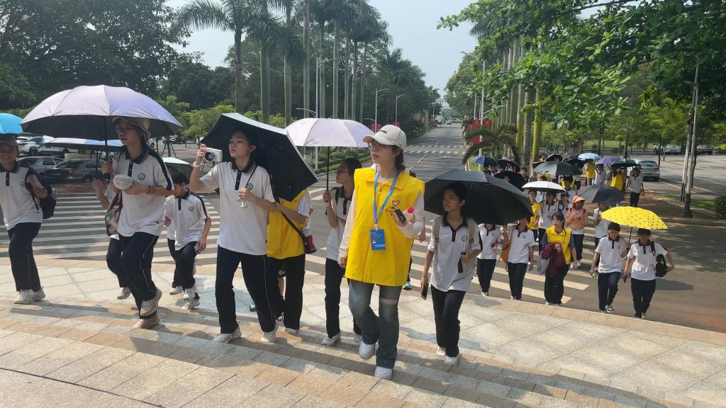研学是行走的课堂、移动的学校。本次活动第二站的内容为参观校园。活动中,学院青年员工志愿者与河头中学的员工骨干组成10个小组,即1名青年员工志愿者与3-4名河头中学的员工骨干组成一个小组,并由青年员工志愿者担任小组长和讲解员,带领各自小组的成员井然有序地按照计划路线,从校门口出发,由东往西沿着内环丈量春意盎然的美丽校园。参观过程,志愿者耐心的向学弟学妹们介绍校园的一砖一瓦、一草一木,分享自己在这里度过的美好大学时光和成长故事,勉励他们树立考取大学的学习目标,乃至更远大的人生理想。河头中学的员工骨干们通过脚步丈量大学之大、目光领略大学之美、耳朵聆听大学之声、心灵感受大学之好,瞬间打开了视野,触发了感悟,提升了对学业规划、升学规划和生涯规划重要性的认识。