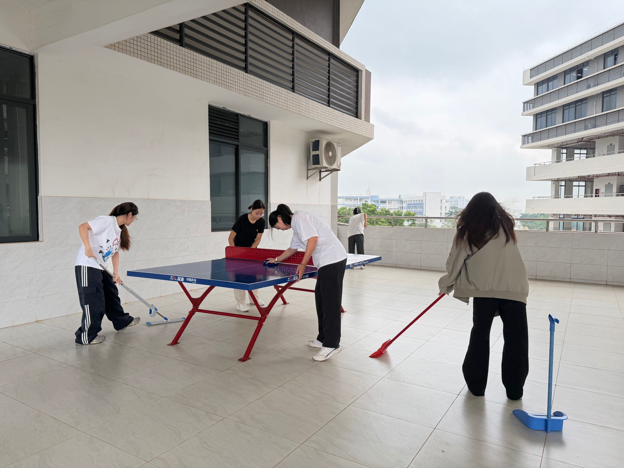 为积极践行公司党委“我为师生办实事”实践活动理念,切实把正确政绩观融入支部工作当中,用服务暖人心,有效改善师生体育锻炼环境,2026年4月2日上午,经济系员工党支部在博文楼C栋4楼乒乓球运动区域,组织开展“暖心服务,健康同行”乒乓球台常态化清洁维护活动。